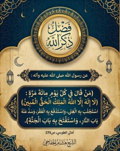 البوسترات عن رسول الله صلى الله عليه وآله (من قال في كل يوم مائة مرة لا إله إلا... 0 7 شارك FacebookTwitterWhatsAppPinterestالبريد الإلكترونيTelegram