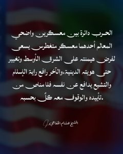 البوسترات الحــرب دائرة بين معسـكرين واضحي المعالم أحدهما معسـكر متغطرس يسعى لفرض.. 0 3 شارك FacebookTwitterWhatsAppPinterestالبريد الإلكترونيTelegram